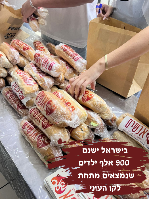 אנחנו בעמותת "אנשים" מחלקת כריכים מזינים ואוהבים לילדים שצריכים אותם, כדי שלכל ילד תהיה הזכות ללמוד, לשחק, ולחייך – על בטן מלאה ועם לב רגוע.
